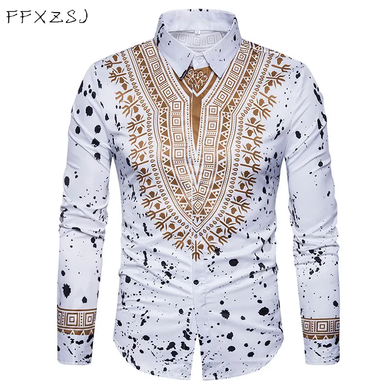 معرض ل جديد قمم الرجال عارضة قميص 2018 الربيع 3D الوطني نمط الطباعة الأزهار نمط الرجال الأزياء طبعة طويل كم قميص الاتحاد الأوروبي حجم