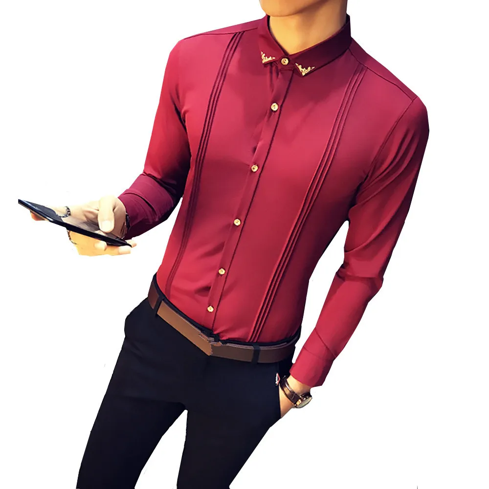المنتجات ذات الصلة ل Shirts و 2018 الخريف جديد الرجال سهرة قمصان طويلة الأكمام صالح سليم وسيم شخصية الأعمال عارضة قميص رجل الأزياء الصلبة حزب قمصان