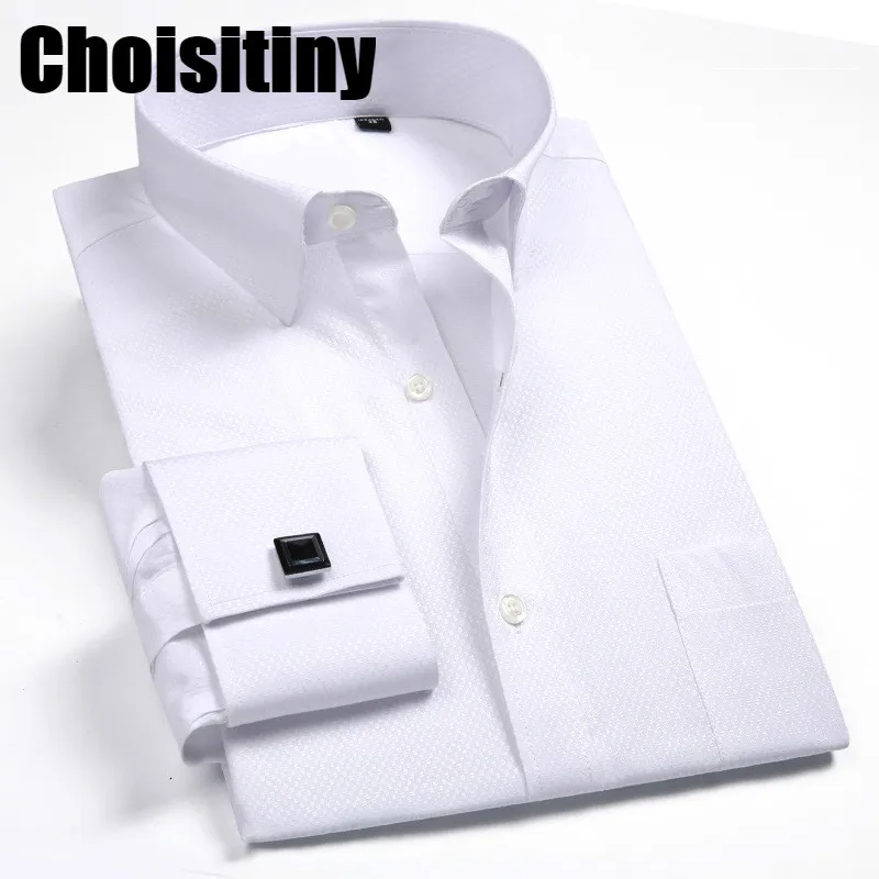 المنتجات ذات الصلة ل Shirts و رجل الفرنسية أزرار أكمام طويلة الأكمام قمصان أسود أبيض الأزرق الأصفر التلبيب الذكور الأعمال اللباس قميص صالح الزفاف حزب الرجال الجملة ملابس