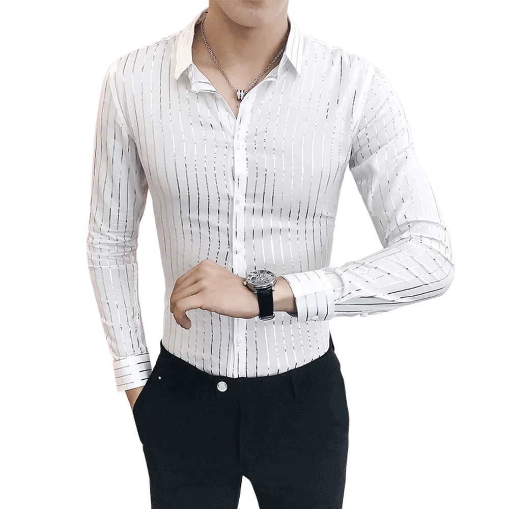 المنتجات ذات الصلة ل Shirts و ظهرت رجل الأعمال عارضة طويلة الأكمام قميص الأزياء البرنز مخطط الذكور عالية الجودة الاجتماعية حزب نادي اللباس قمصان