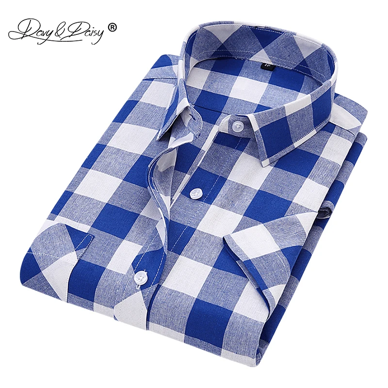 استعارات ل DAVYDAISY 2019 جديد وصول الصيف الرجال القمصان الرجل الكلاسيكية منقوشة قصيرة الأكمام قميص الأزياء عارضة رجل camisa الغمد DS241