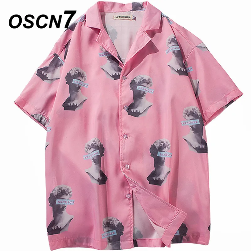 صور من OSCN7 2019 عارضة المطبوعة قصيرة الأكمام قميص الرجال الشارع 2019 هاواي الشاطئ النساء أزياء قصيرة الأكمام قمصان Harujuku رجل 375