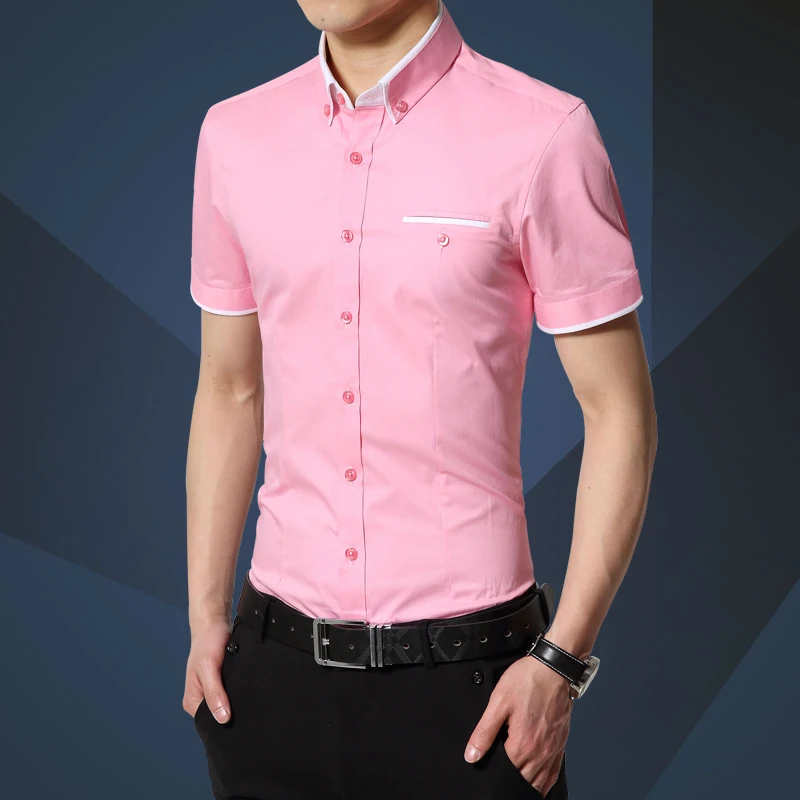 المنتجات ذات الصلة ل Shirts و 2019 الصيف جديد قميص رجالي العلامة التجارية الفاخرة الرجال القطن قصيرة الأكمام اللباس قميص بدوره إلى أسفل طوق سترة قميص الرجال الملابس