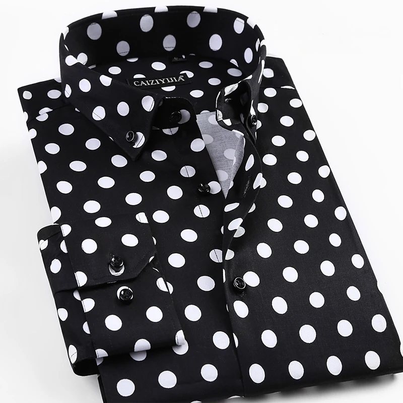 المنتجات ذات الصلة ل Shirts و 2019 ربيع جديد الرجال البولكا نقطة الطباعة طويلة الأكمام قميص الأزياء الذكور القمصان عارضة الرسمي القطن قميص
