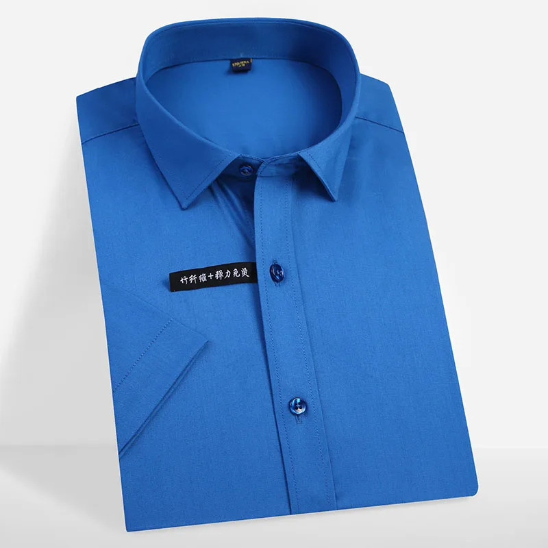 شراءمعلومات اضافية 2019 الصيف منتظم صالح الأعمال الرجال قصيرة الأكمام قمصان الصلبة الخيزران الألياف تمتد الرعاية سهلة الرسمي الذكور قمم