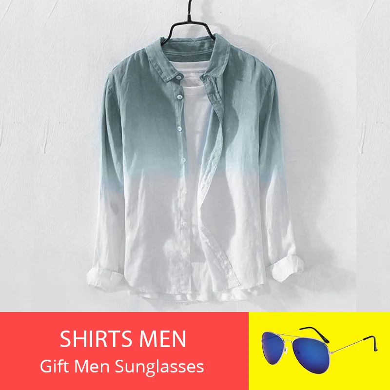 وانت porالبحث عن معلومات Shirts, en ese momento القمصان للرجال الصيف بارد رقيقة تنفس طية صدر السترة طوق شنقا مصبوغ التدرج خمر القطن نمط عارضة زائد حجم قميص es posible poner interest