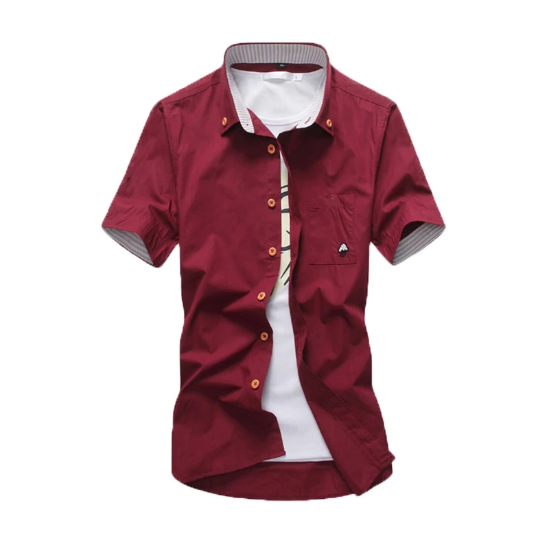 أرغب في شراءمعلومات اضافية الآسيوية صغيرة حجم الرجال قصيرة الأكمام قميص الشبان أزياء الصيف عارضة قمصان فطر صغير التطريز الصلبة قميص