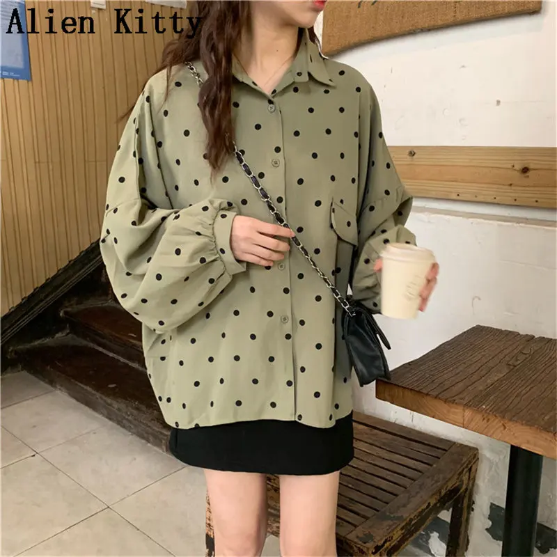 استعارات ل الغريبة كيتي الربيع منقطة جديد نمط بدوره إلى أسفل طوق لينة شحن قمم شحن الأساسية قمصان الحلو عارضة الإناث قمصان أنيقة