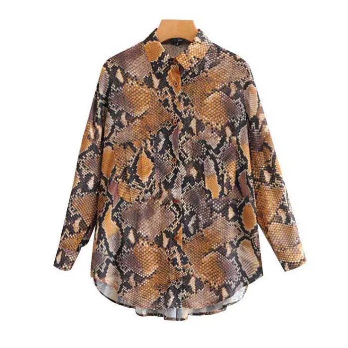 المنتجات ذات الصلة ل Shirts و أنيق الأفعى طباعة بلوزة فضفاضة المتضخم كم طويل قمصان برقبة منسدلة الإناث عارضة مطوي قمم blusas