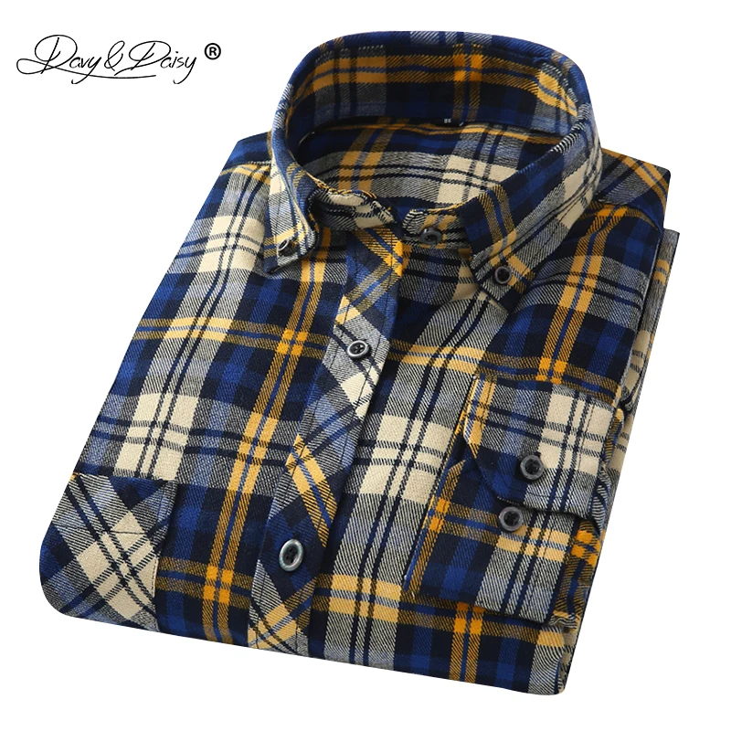 أرغب في شراءمعلومات اضافية DAVYDAISY العلامة التجارية الملابس 2018 جديد وصول الفانيلا قمصان الرجال كم طويل سليم صالح لينة الرجال الكلاسيكية منقوشة عارضة قميص DS198