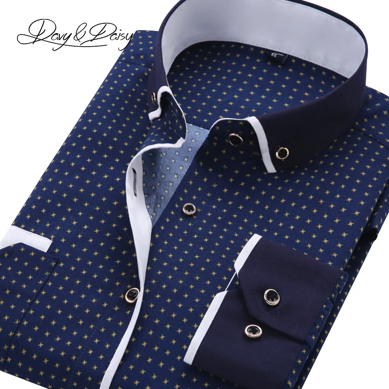 شراءمعلومات اضافية DAVYDAISY عالية الجودة الرجال قميص ملابس علوية بأكمام طويلة للربيع بدوره إلى أسفل طوق اللباس البولكا نقطة طباعة عارضة قميص الرجال Camisas DS-026