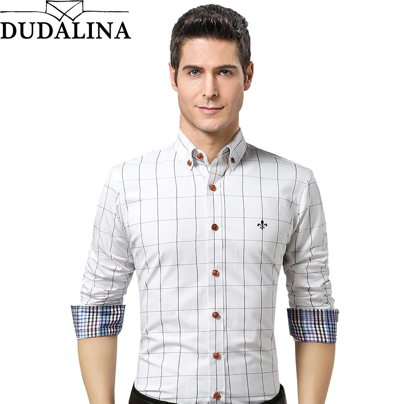 صور ل Dudalina الذكور قميص العلامة التجارية الملابس رجل طويل كم قميص 2019 الصيف منقوشة صالح سليم قميص زائد حجم عارضة قميص الرجال الملابس