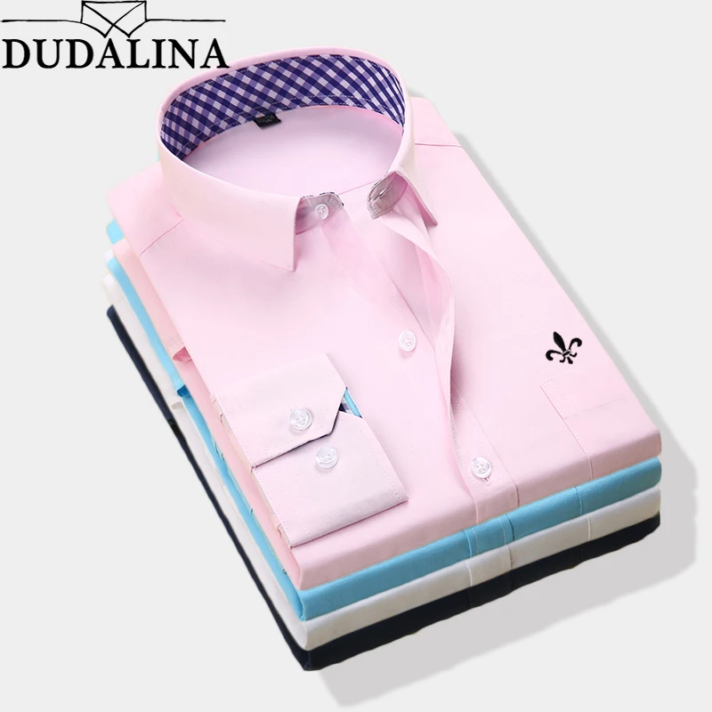 استعارات من DUDALINA 2019 جديد الكلاسيكية اللباس قميص الذكور قميص الرجال الربيع الخريف كم طويل الصلبة حك الرسمي الأعمال الرجال الاجتماعية قمصان