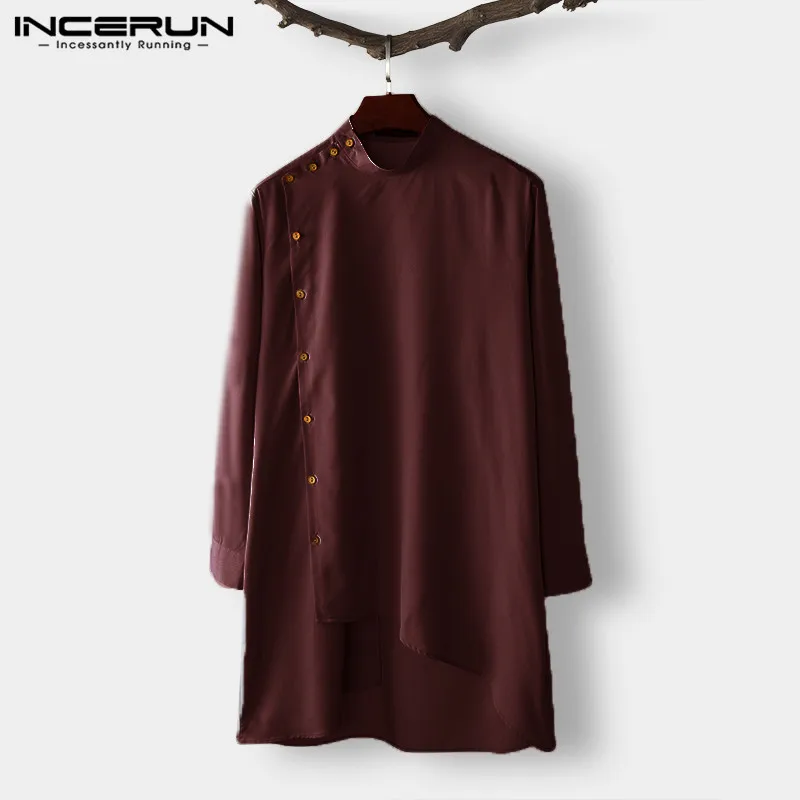 وانت porالبحث عن معلومات Shirts, entonces INCERUN 2019 الرجال قميص طويل الأكمام عارضة مسلم العربية الإسلامية قميص الرجال زر غير النظامية تنحنح الصلبة كورتا دعوى الرجال قمصان hombre tal vez introducir taste