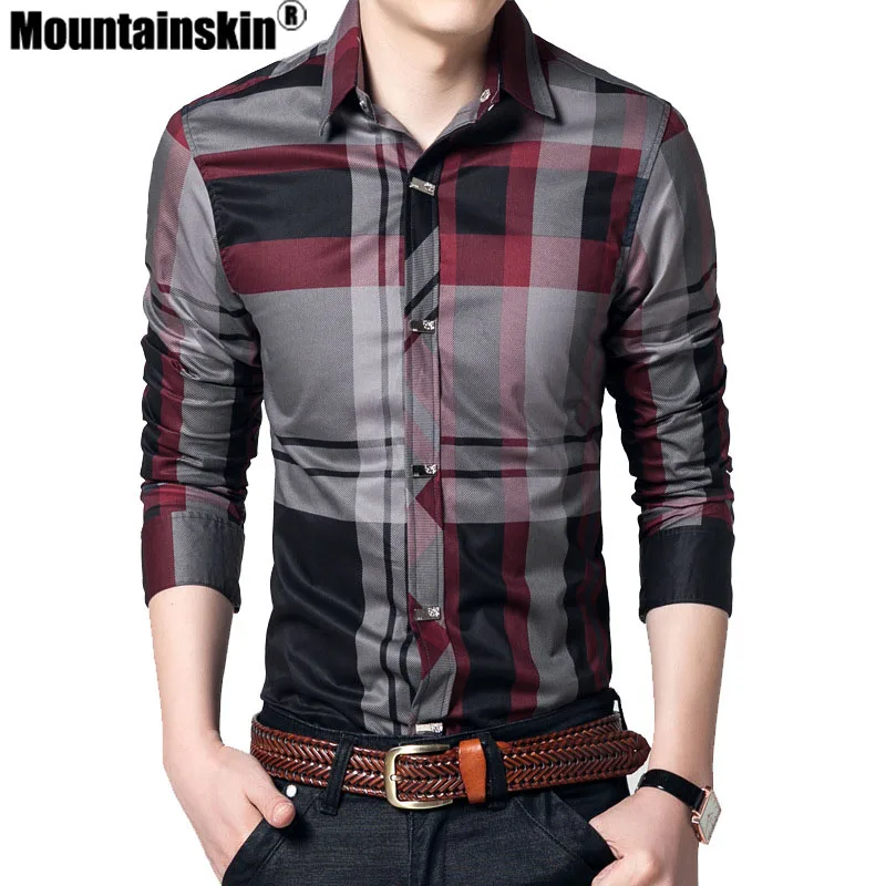 معرض من Mountainskin مخطط قمصان رجالية 4xl 100% ٪ رجال الأعمال قمصان طويلة الأكمام ماركة عارضة الرجال الملابس يتأهل SEA144
