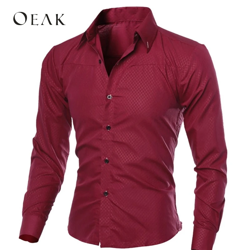 صور من Oeak الربيع الخريف قمصان للمناسبات الرسمية بأكمام طويلة للرجال الصلبة ضئيلة الأساسية بدوره إلى أسفل طوق الأعمال اللباس قمصان camisas الغمد