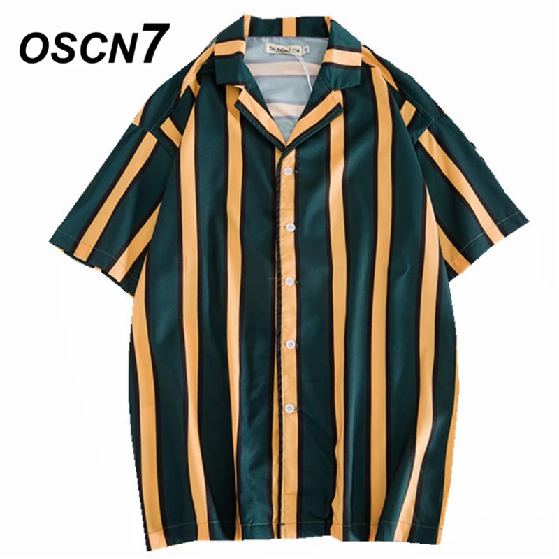 شراءمعلومات اضافية OSCN7 2019 عارضة المطبوعة قصيرة الأكمام قميص الرجال الشارع 2019 هاواي الشاطئ النساء أزياء قصيرة الأكمام قمصان Harujuku رجل 405