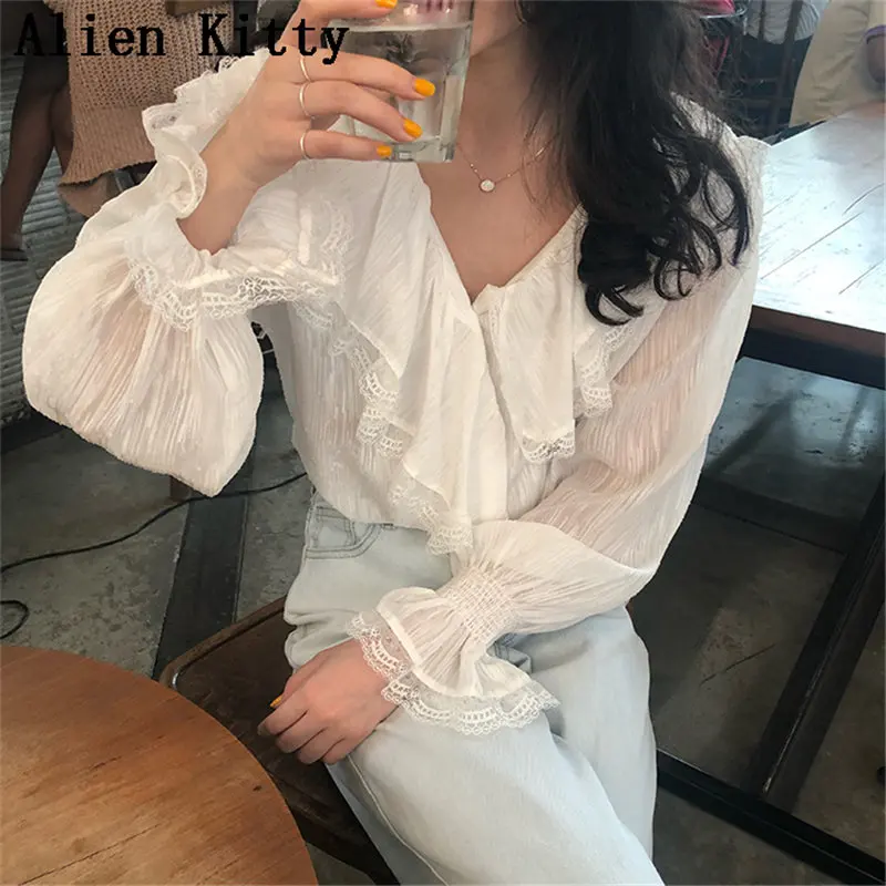 المنتجات ذات الصلة ل Shirts و الغريبة كيتي كوريا شيك عارضة الطازجة الخامس الرقبة مضيئة الأكمام 2019 الصيف كم كامل الحلو الإناث أنيقة الصلبة الطازجة قميص 2 الألوان