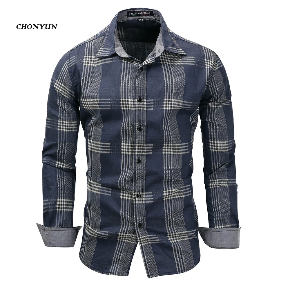 المنتجات ذات الصلة ل Shirts و العلامة التجارية الجديدة 2019 الرجال عارضة قميص الدنيم طويلة الأكمام سليم صالح مخطط قمصان الأعمال Camisa تنفس اللباس قميص الرجال الملابس