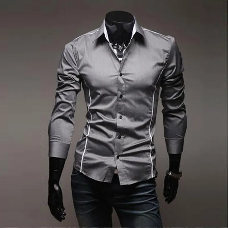 المنتجات ذات الصلة ل Shirts و 2019 جديد وصول الكمال اقتصاص مخطط الرجال عارضة طويلة الأكمام قميص الأزياء الأبيض الحدود اللباس Camisa الغمد الرجال قميص