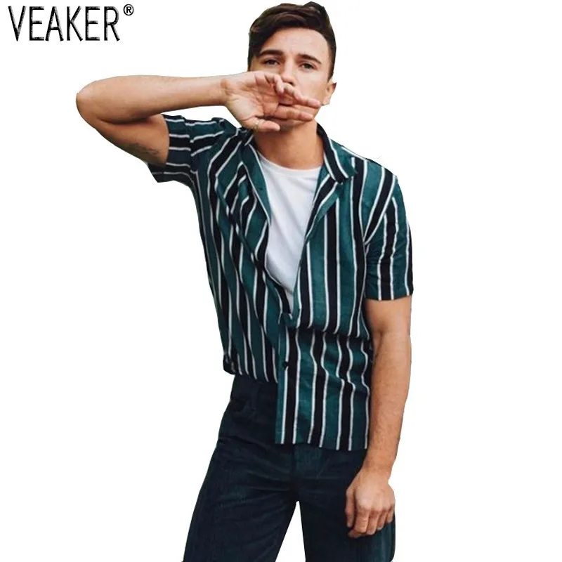 المنتجات ذات الصلة ل Shirts و 2019 جديد الرجال عالية الشارع عارضة الذكور مخطط الشارع الشهير قميص قمم الرجال الصيف قصيرة الأكمام قمصان M-3XL