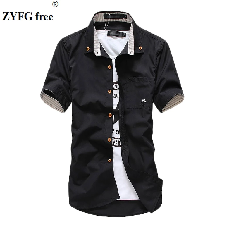 المنتجات ذات الصلة ل Shirts و 2019 جديد نمط الرجال قصيرة الأكمام قميص الشبان أزياء الصيف عارضة قمصان فطر صغير التطريز الصلبة قميص صغير حجم