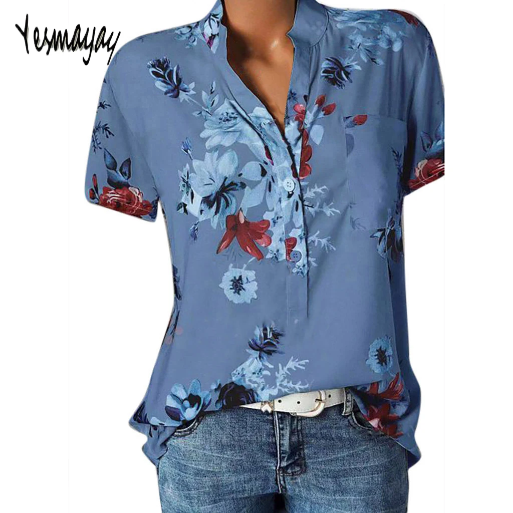 استعارات من بلوزة عصرية النساء زائد حجم 5XL الصيف الخامس الرقبة طباعة بلوزة قميص قمم قصيرة الأكمام Blusas موهير 2019 إمرأة قمم و البلوزات
