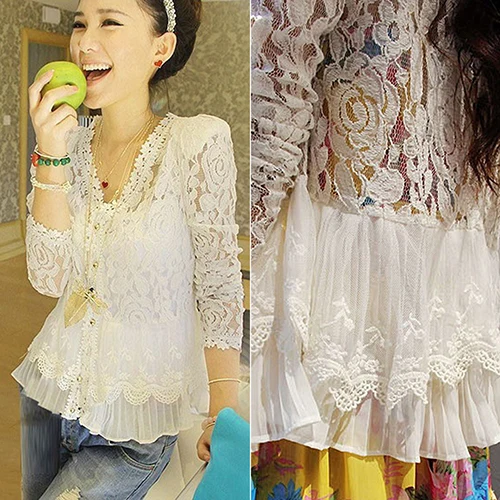 وانت con motivo deشراء Shirts, en ese momento النساء الدانتيل الكروشيه الزهور بلوزة قميص طويل الأكمام المرقعة الجوف سترة tal vez introducir like