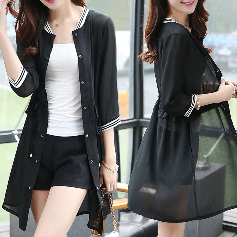 المنتجات ذات الصلة ل Shirts و طويلة الأكمام كيمونو سترة المرأة الصيف الخريف رقيقة تنفس الشيفون بلوزة قميص عارضة الدانتيل متابعة زائد حجم قمم Blusa موهير