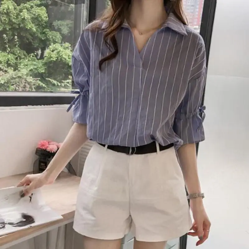 المنتجات ذات الصلة ل Shirts و جديد الدانتيل يصل القوس نصف فراشة كم قميص المرأة الخامس الرقبة فضفاض Blusas فام عارضة قمم مكتب سيدة المحملة زائد حجم 3XL