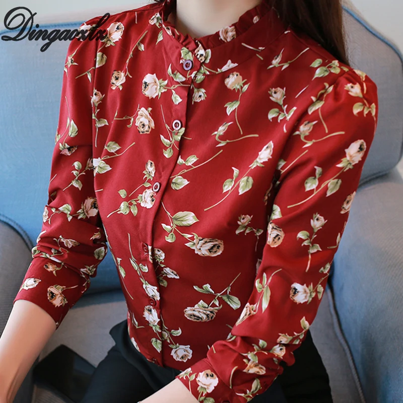 وانت a favor deشراء Shirts, en ese momento Dingaozlz جديد نمط المرأة بلوزة شيفون الإناث زهرة OL قمم الأزياء طويلة الأكمام زهرة قميص مطبوع es posible poner interest