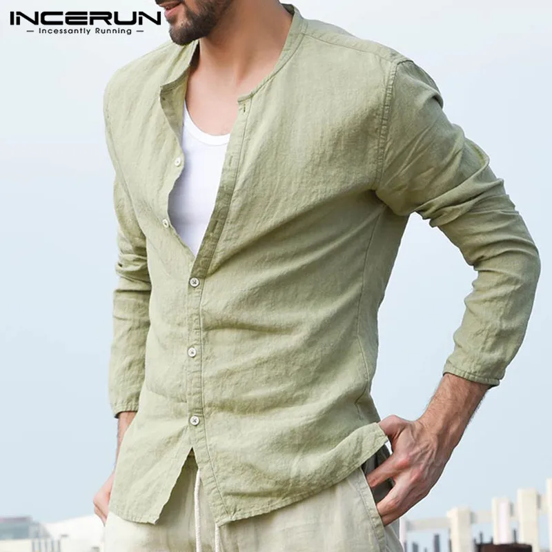 شراءمعلومات اضافية INCERUN 2019 قميص رجالي كم طويل القطن صالح سليم قمم الشارع الشهير عارضة الازياء خمر قمصان camisa الغمد الخريف S-3XL