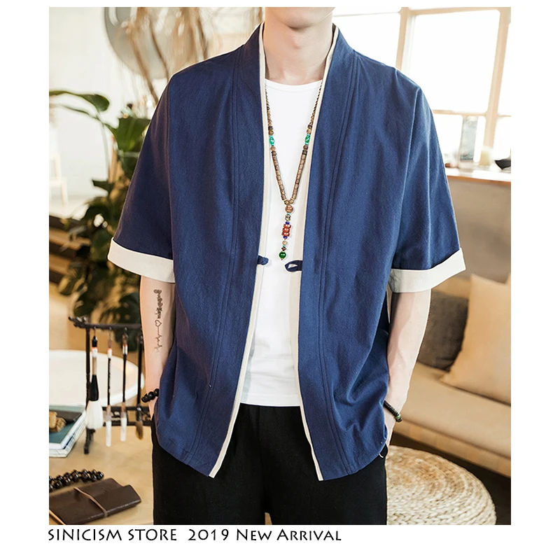 صور من Sinicism مخزن الرجال خليط قميص الشارع الشهير قصيرة الأكمام 2019 الصيف المتناثرة خمر كيمونو قمصان الأسود الأزياء المفتوحة غرزة