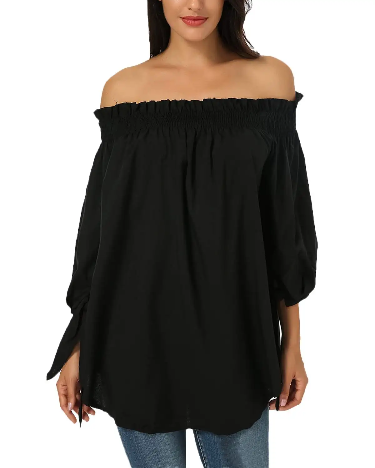 المنتجات ذات الصلة ل Shirts و ZANZEA 2019 الصيف قمم المرأة مثير قبالة الكتف مائل الرقبة مخطط ضئيلة القوس قمصان الإناث بلوزة عارضة حزب Bluasa زائد حجم