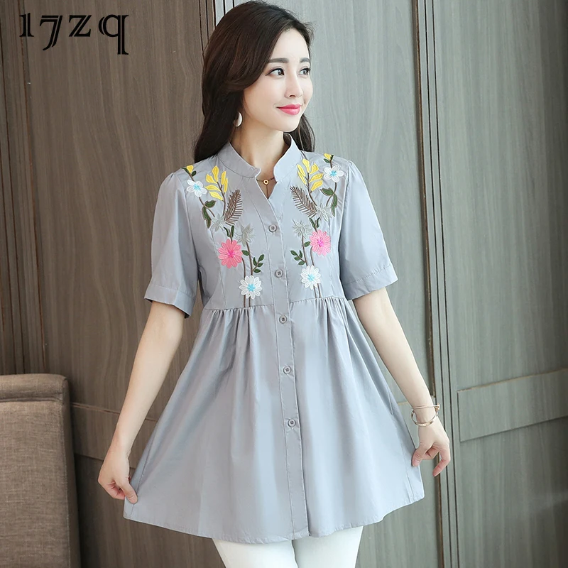 المنتجات ذات الصلة ل Shirts و 17zq جديد الخامس الرقبة قميص مطرزة طويل حجم كبير مزاجه قميص أنيق بأكمام قصيرة مشبك خياطة تيشرت T9908