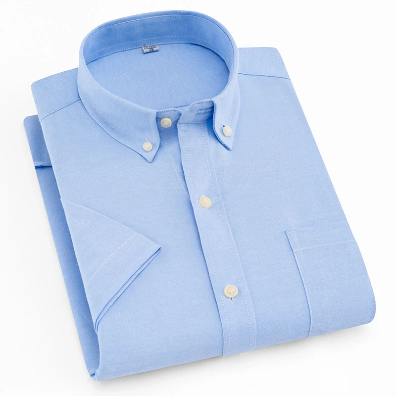 معرض من مكتب قصير كم قميص الرجال 2018 الصيف الجديدة الرجال النمط الأساسي أكسفورد قميص زائد الحجم الصلبة الأبيض الأزرق القطن ذكر قميص قمم