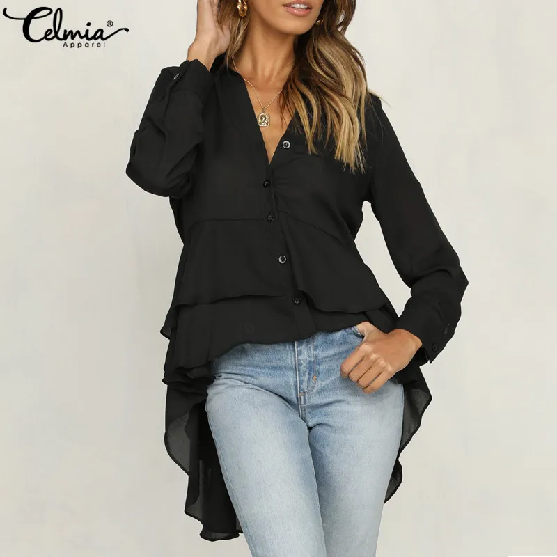 المنتجات ذات الصلة ل Shirts و 2019 ملابس علوية بأكمام طويلة للربيع الدانتيل بلوزة النساء قمصان أنيقة غير متناظرة الإناث فضفاضة الخريف غير النظامية بلوزة شيفون الدانتيل أعل...