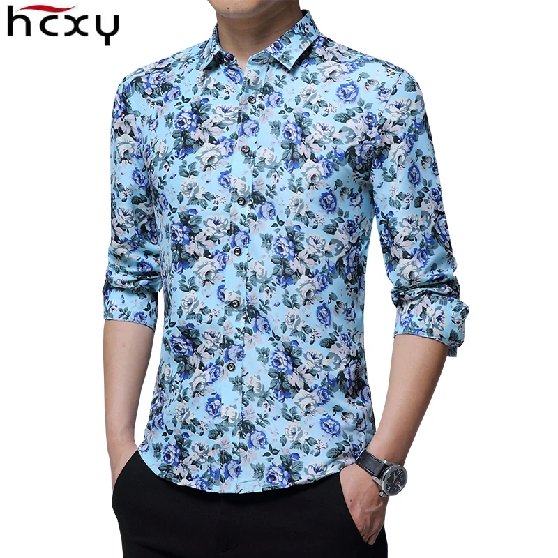 استعارات من HCXY 2019 الخريف جديد رجل العمل قمصان العلامة التجارية طويلة الأكمام الأزهار المطبوعة الرجال اللباس قمصان الاجتماعية الذكور قمصان 5XL camisa الغمد