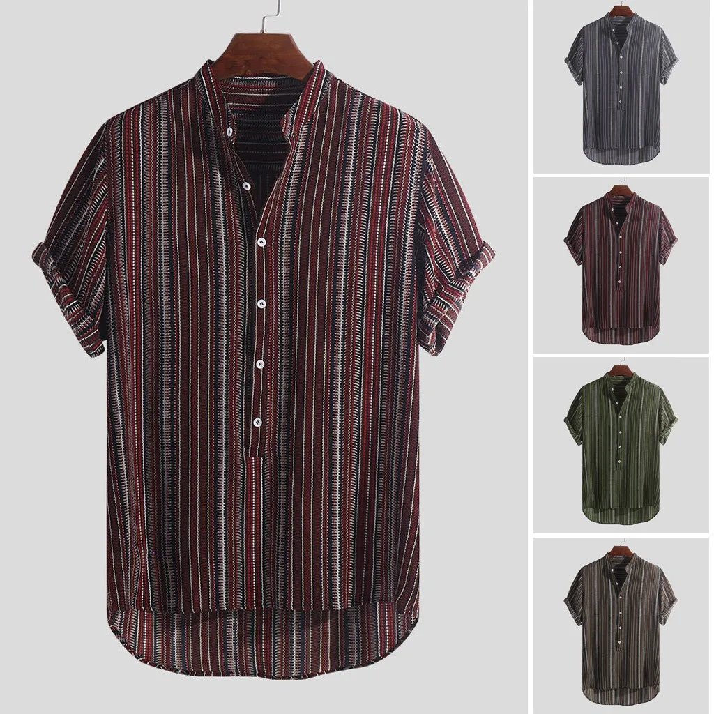 المنتجات ذات الصلة ل Shirts و رجل الصيف مخطط أزرار يطير تنفس قصيرة الأكمام عارضة هينلي قمصان M-3XL الكلاسيكية أزياء شخصية
