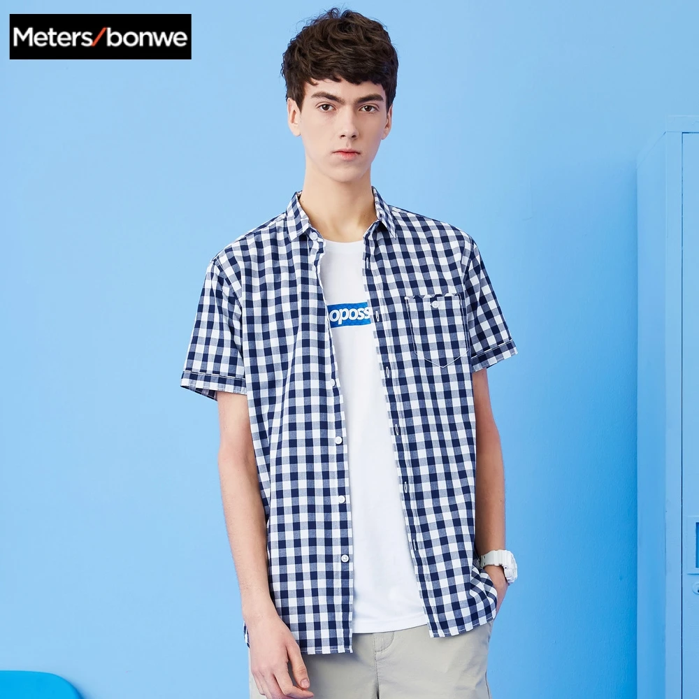 METERSBONWE جديد الصيف قصيرة الأكمام قميص منقوشة عارضة الرجال قميص рубашка мужская