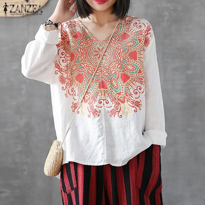 البحث عن معلوماتمعلومات اضافية S 5XL ZANZEA 2019 الصيف حزب تونك بلايز كم طويل الأزهار المطبوعة Blusas عارضة V الرقبة شيك قميص بلوزة الإناث قميص