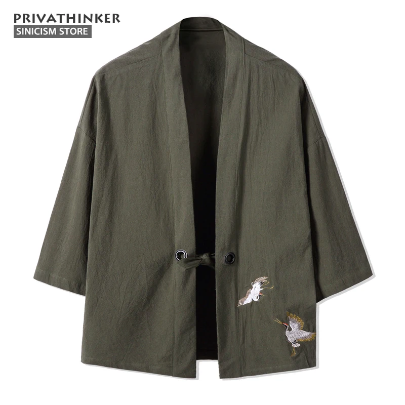 البحث عن معلوماتمعلومات اضافية Sinicism مخزن التطريز القطن الكتان قمصان الرجال كيمونو التقليدية المفتوحة غرزة قمصان الذكور ثلاثة أرباع كم قميص المتناثرة