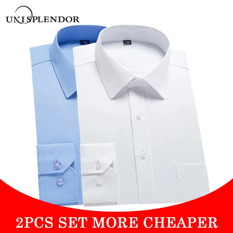 شراءمعلومات اضافية Unisplendor 2 قطعة مجموعة طويلة الأكمام الرجال ضئيلة اللباس قميص عالية الجودة الصلبة الذكور الملابس صالح قمصان رسمية زائد حجم 4XL YN10403